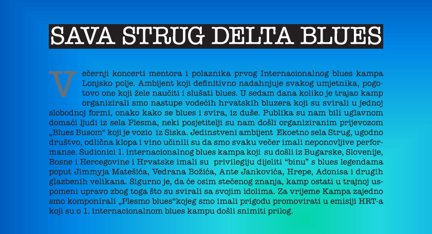 PRILOG HRT !<br />1. INTERNACIONALNI ROCK&BLUES KAMP <br />U PARKU PRIRODE LONJSKO POLJE - EKO ETNO SELO STRUG.